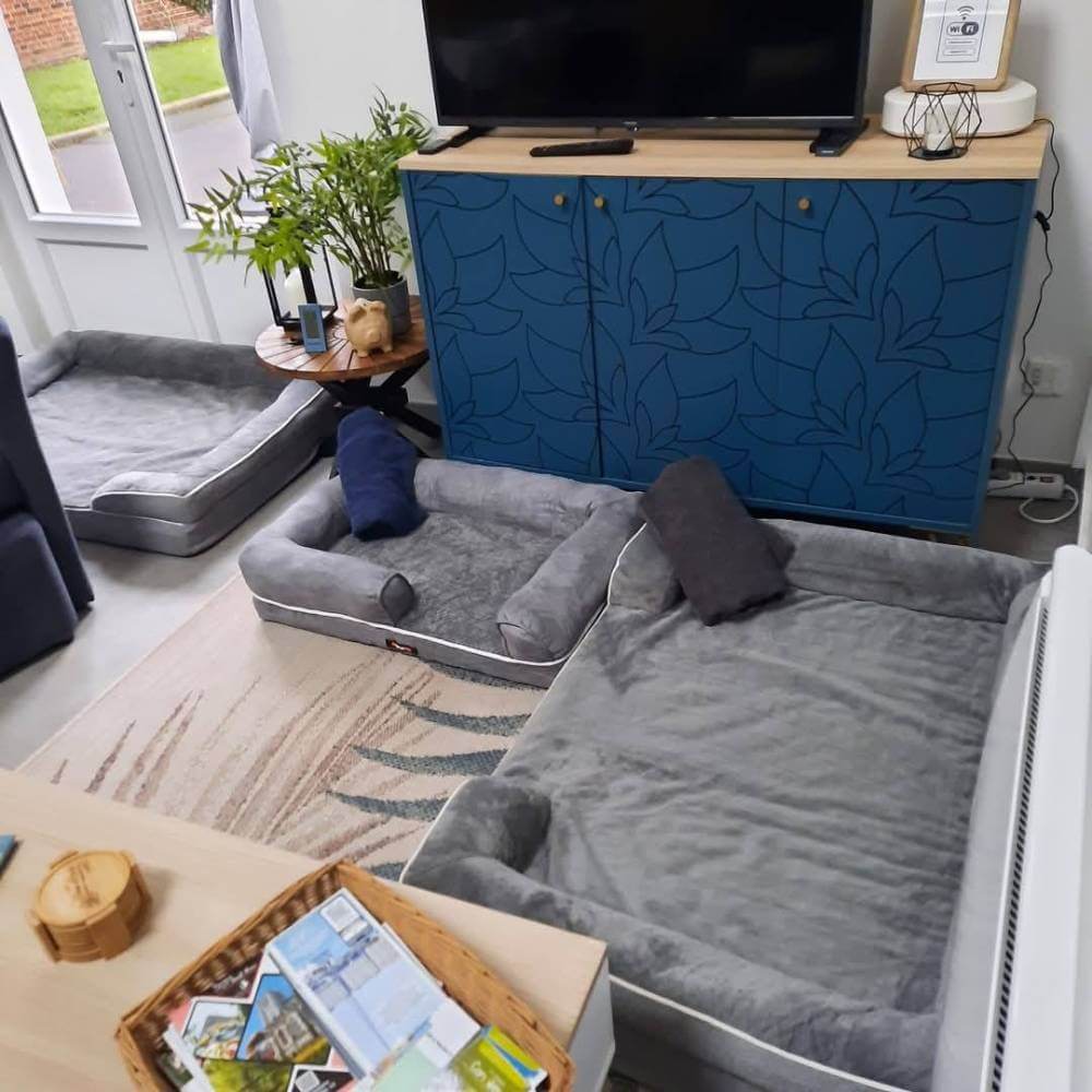 Coussins orthopédiques adaptés à leur taille accompagnés de plaids et de protections canapé et fauteuils..