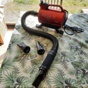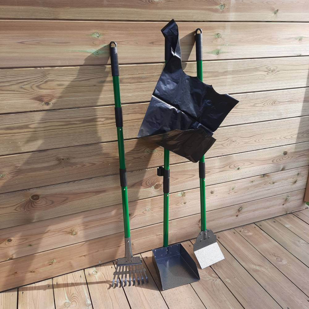 un accès à l’eau extérieur pour un rinçage, un pulseur pour le séchage, des peignoirs de toutes tailles, des serviettes, des sacs à crottes, un équipement pour les ramasser dans le jardin, services d’une toiletteuse sur demande.