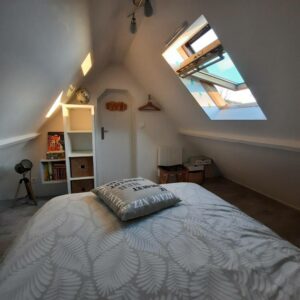 2 chambres cosy vous accueillent : une à l’étage et l’autre au rez-de-chaussée.