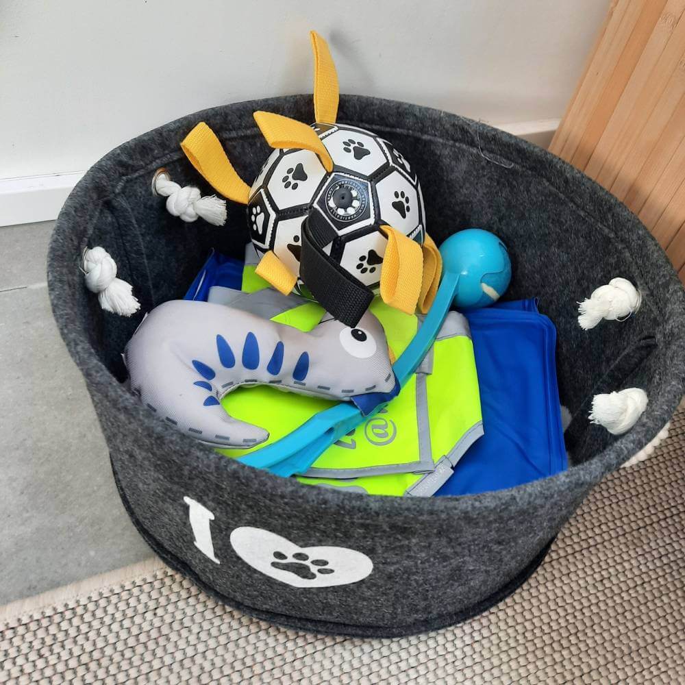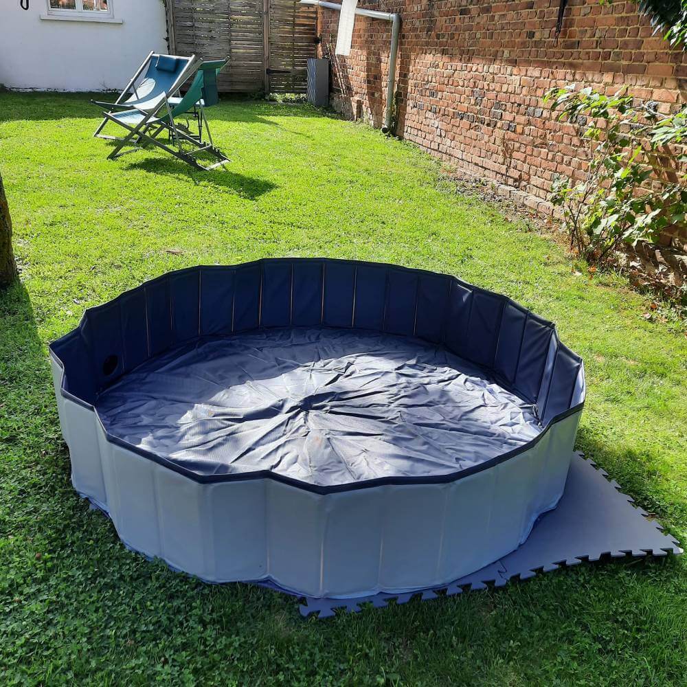 Des jouets ( balle, ballon, corde ), des piscines rigides et une piscine pliable, un toutou-bar extérieur, un jardin clos et sécurisé